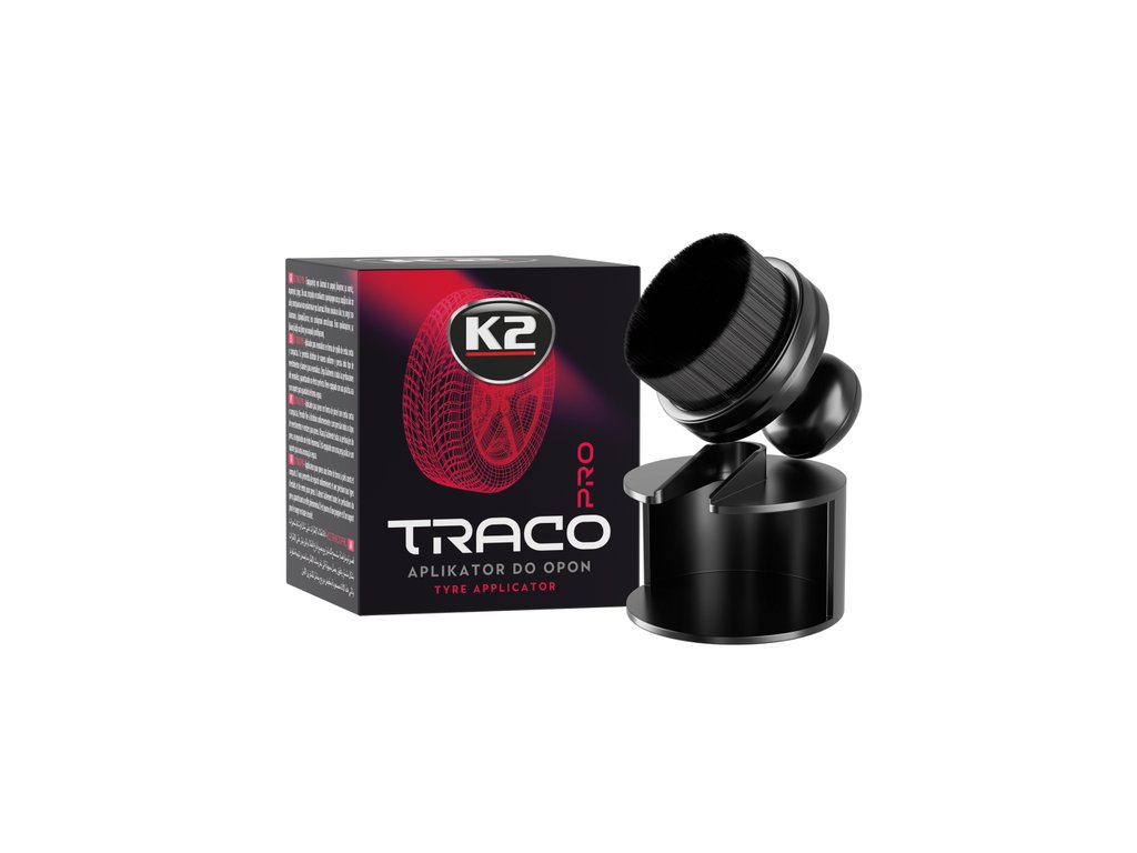 K2 TRACO PRO je aplikátor pneumatik ve formě štětce s hustými štětinami. Určeno pro každého, kdo chce hlubokou černou a odolnou ochranu povrchu pneumatiky. Její měkké štětiny umožňují přesné pokrytí každé části pneumatiky bez ohledu na žebra a značení na ní. Přiložený stojánek umožňuje pohodlné uložení aplikátoru a chrání štětiny před nečistotami a poškozením.