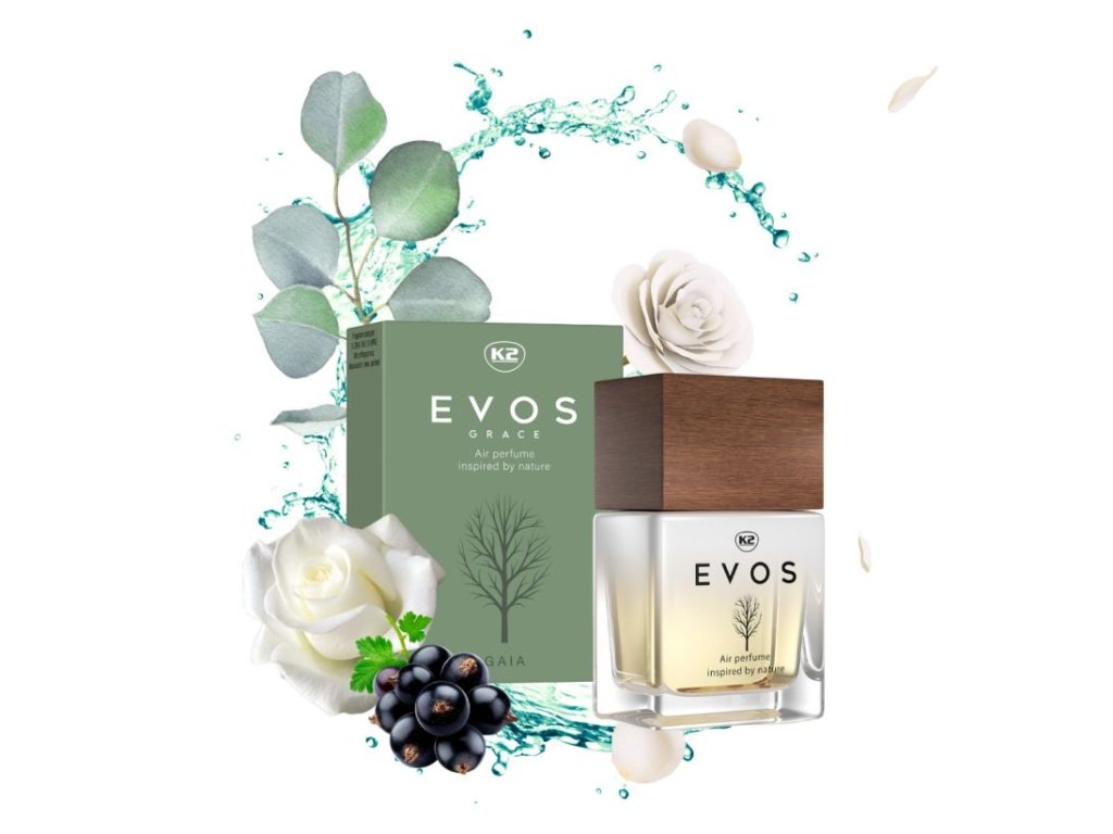 K2 Evos Grace Perfume Gaia 50ml - Osvěžovač vzduchu plný lásky a harmonie. Srdcem této jedinečné kompozice je osvěžující černý rybíz, který přináší svěžest a energii a připomíná nám životní sílu přírody.
