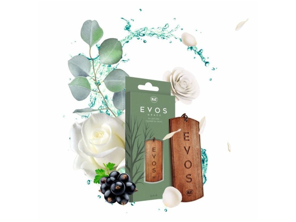 K2 EVOS Grace GAIA – dřevěný osvěžovač do auta plný harmonie. Vonné tóny černý rybíz, růže a pačuli přinášejí svěžest a přírodní šarm do každé jízdy.