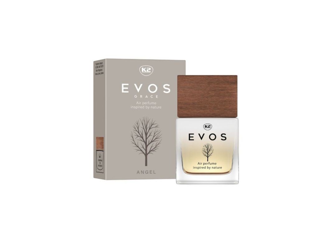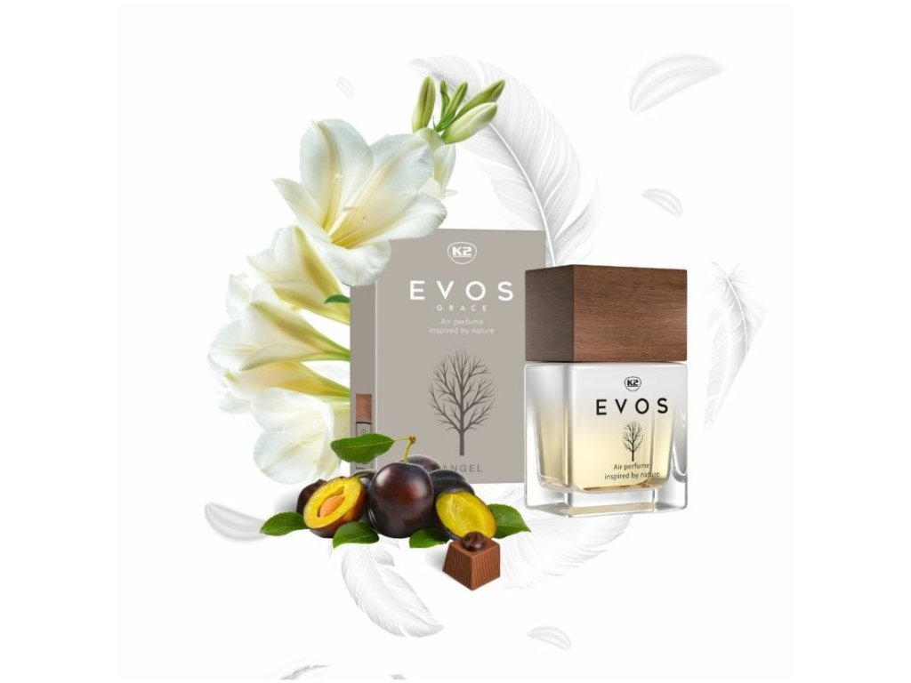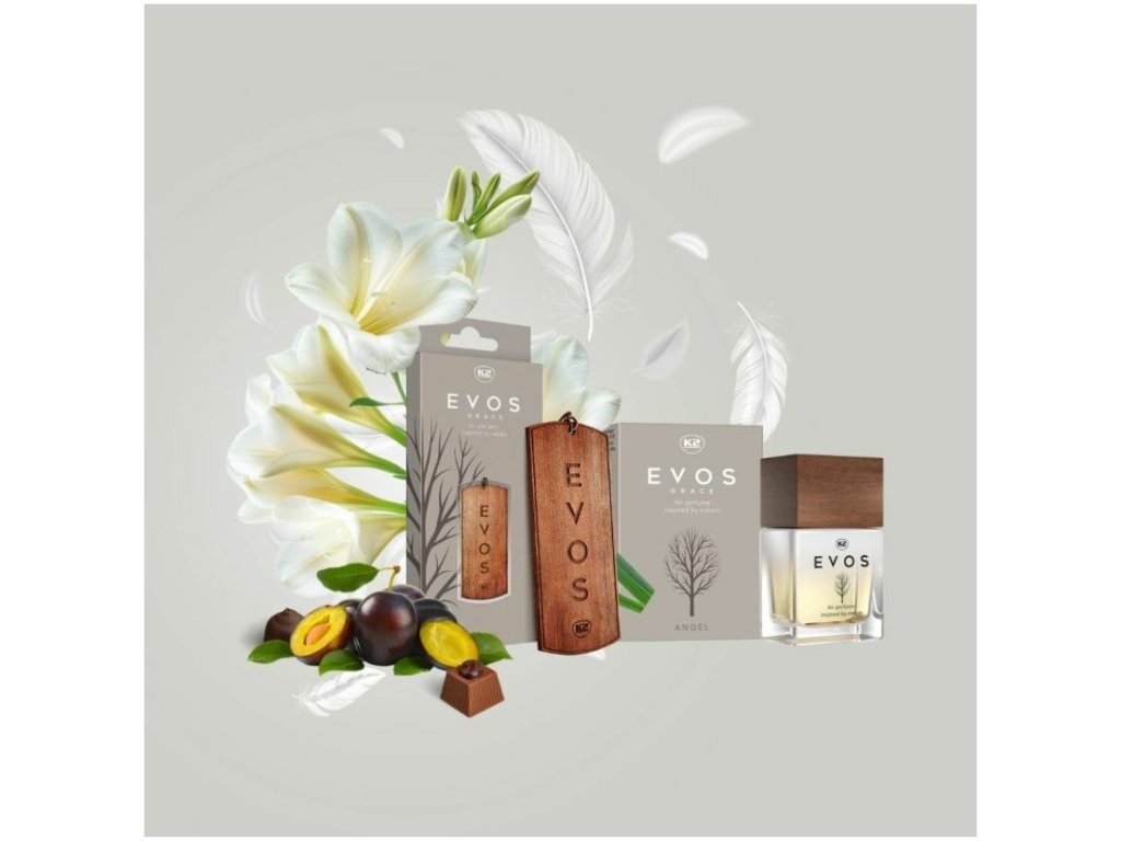 K2 EVOS Grace ANGEL – parfém do auta s jemnou květinově-ovocnou vůní frézie, švestky a pralinek. Lehká a snová vůně, která navodí pocit klidu a pohody.