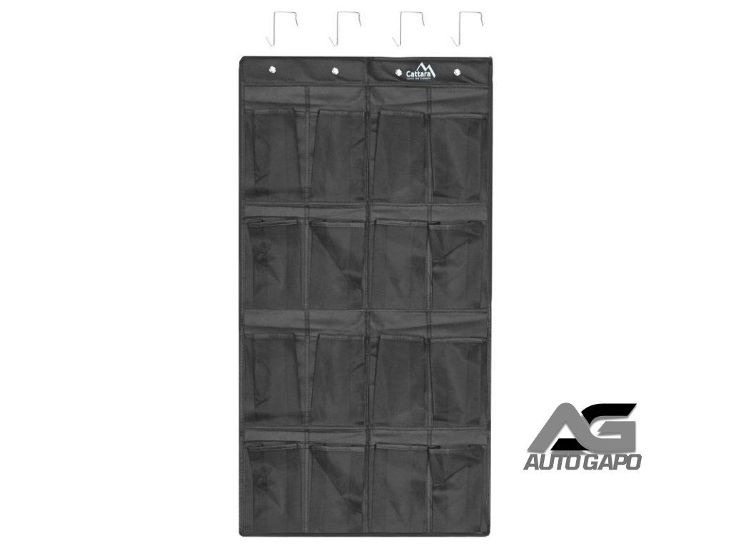 Organizér s rozměry 55 x 103 cm je opatřen 16 sítěnými kapsami o rozměrech 12 x 20 cm, do kterých je možné umístit nejrůznější předměty od flašek s pitím až po čelovky, peněženky, náhradní ponožky a jakékoliv další předměty.
